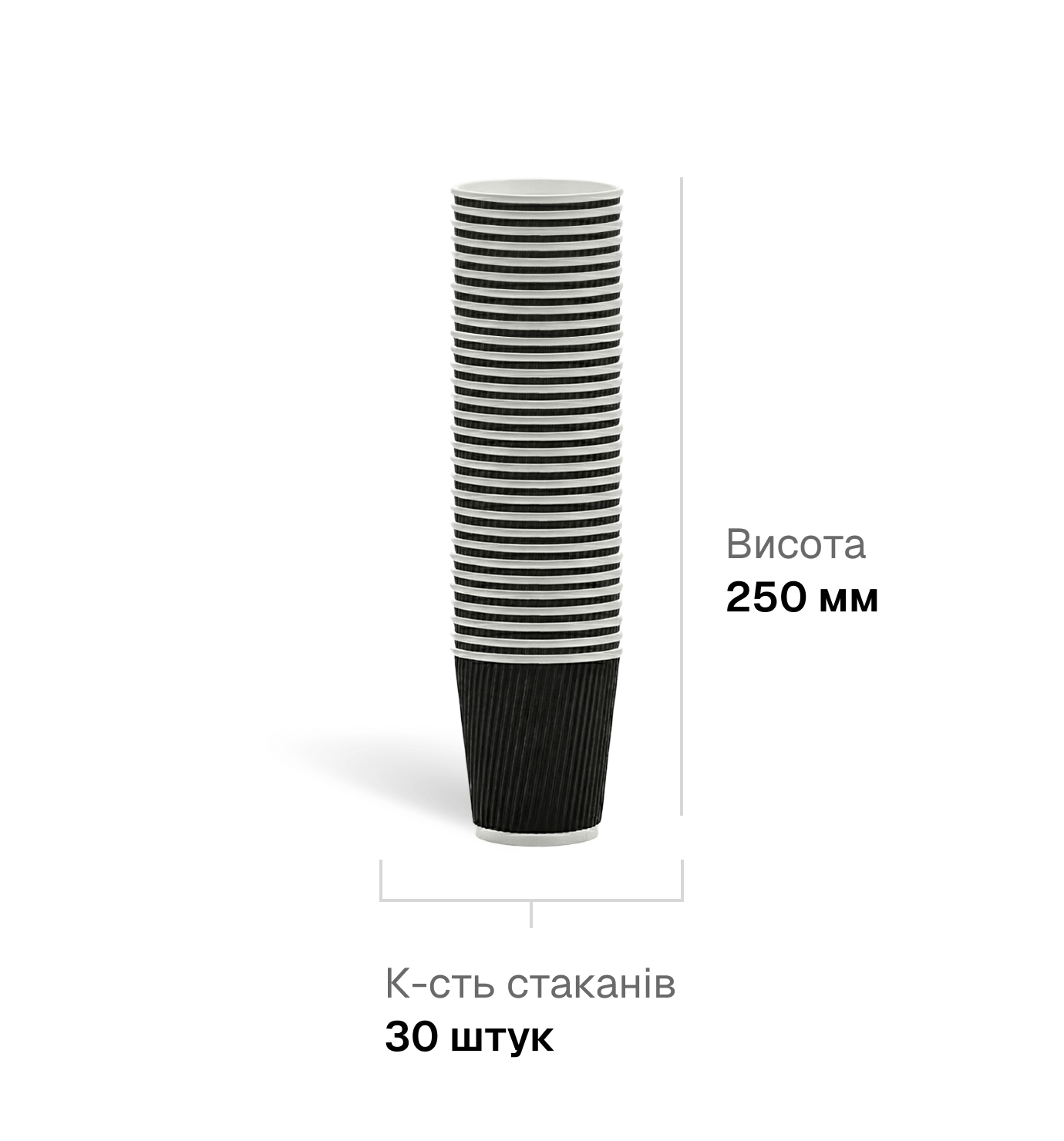 Стакан Гофрований (Чорний) 30шт/пак.,40пак/ящ.(1 ящ.1200 шт)
