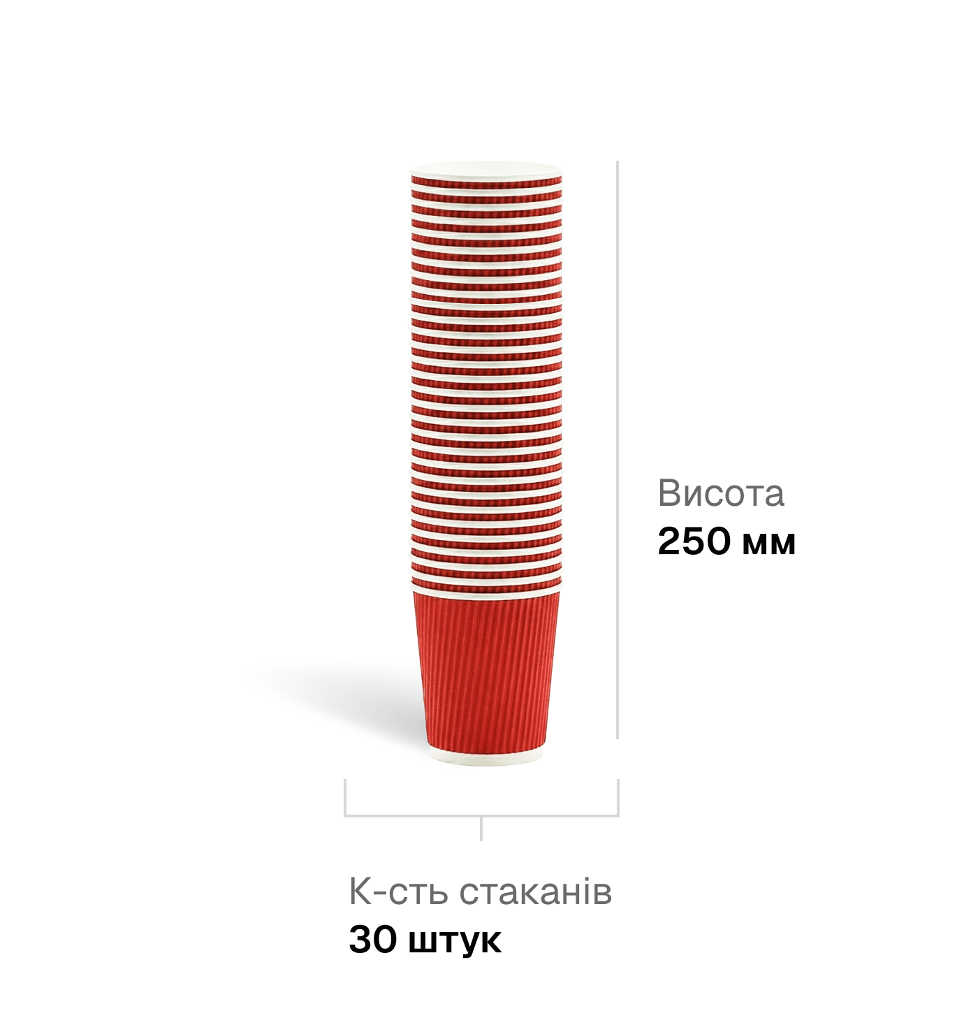 Стакан Гофрований (Червоний) 30шт/пак.,40пак/ящ.(1 ящ.1200 шт)